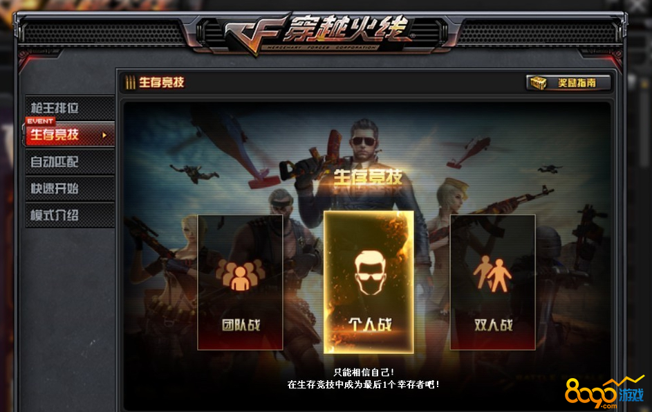搜索"8090网页游戏"穿越火线作为国内FPS游戏的领头羊,从开测到现在,已经10年了,一直都很火爆,主要是运营思路比较超前,像之前CSonline的僵尸玩法比较火,穿越火线随即就在游戏更新此类玩法,拉拢了不少玩家。现在绝地求生火起来了,穿越火线没有打消增热度的想法,没多久游戏里就更新出吃鸡模式了,接下来就由我介绍下穿越火线中如何进入吃鸡模式,穿越火线会不会像绝地求生那样能容纳100人?