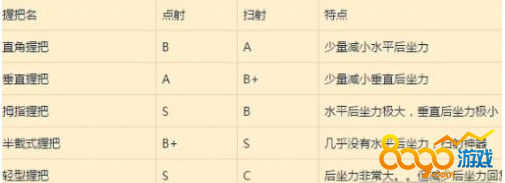 垂直握把:点射A,扫射B+,特点是少量减小垂直后坐力