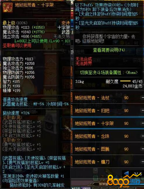 小编直接上图,这是在体验服装备辞典看到的武器属性,大家可以直观的看到,圣职者武器可以加10级的荣誉祝福,4级的太阳,不知道是不是显示类BUG,但万一要是真的,那这把武器无疑将是奶爸奶妈的最强神器!和圣耀相比,这把武器也更好获得,因为脸白的在翻牌的时候就能获取一个自选武器礼盒哦!