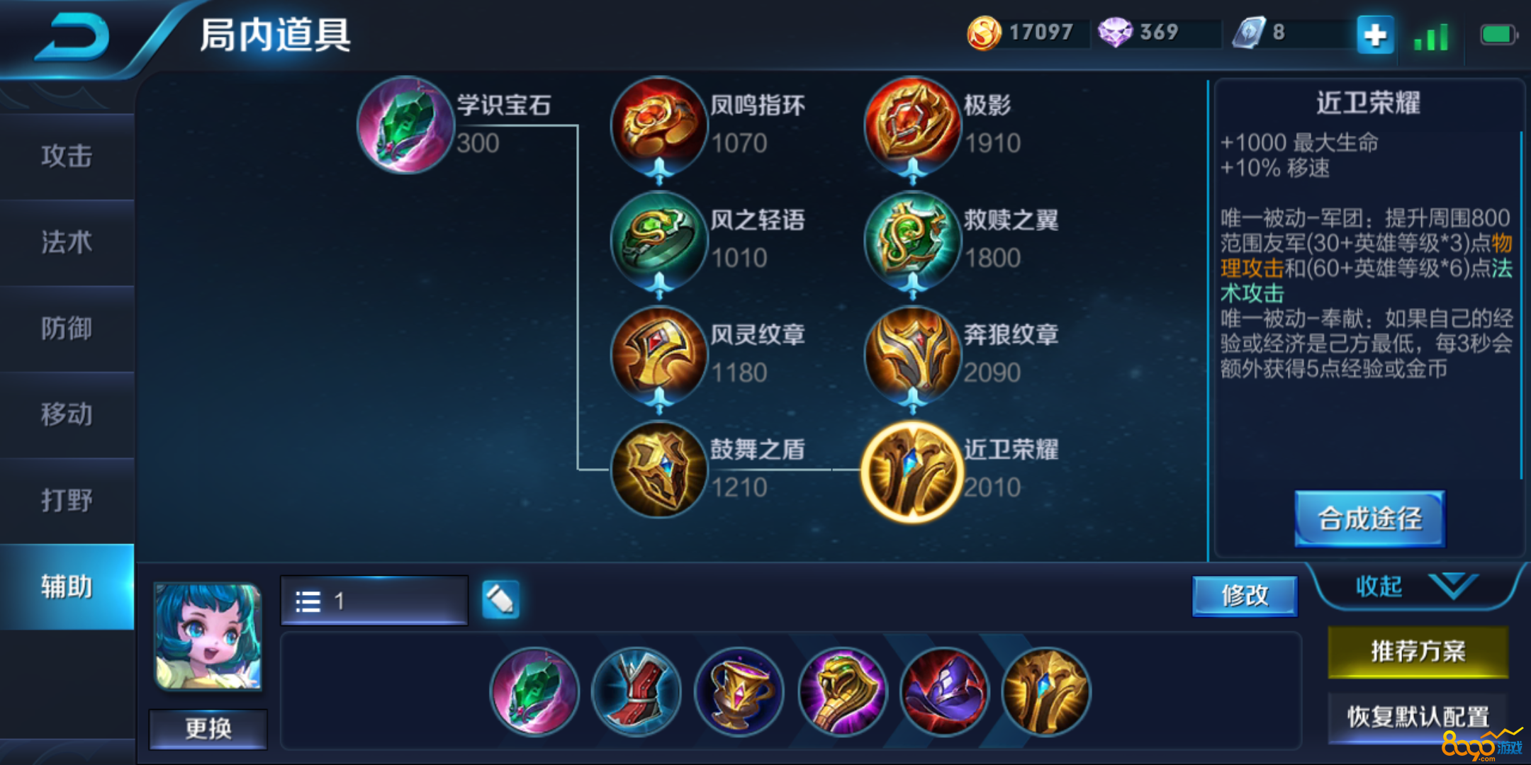 蓝色调和是辅助必备的,如果没有可以用狩猎替代。