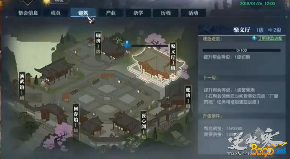 帮会建筑建造或升级字面意思是消耗帮会资金,却隐藏或未说明同时会消耗繁荣度,繁茉度不能日常维护增加,只能接取萧姨任务,一次2点,另远程援助不加繁荣度,应该是bug,建议修正。繁荣度过低将不能开启帮会活动和学习帮会科技帮会想要发展必须要升级建筑和杂学,建的快也要帮众积极做帮贡任务,咸鱼散人帮会进度会比较慢,你建筑升快了,繁荣度跟不上也白搭