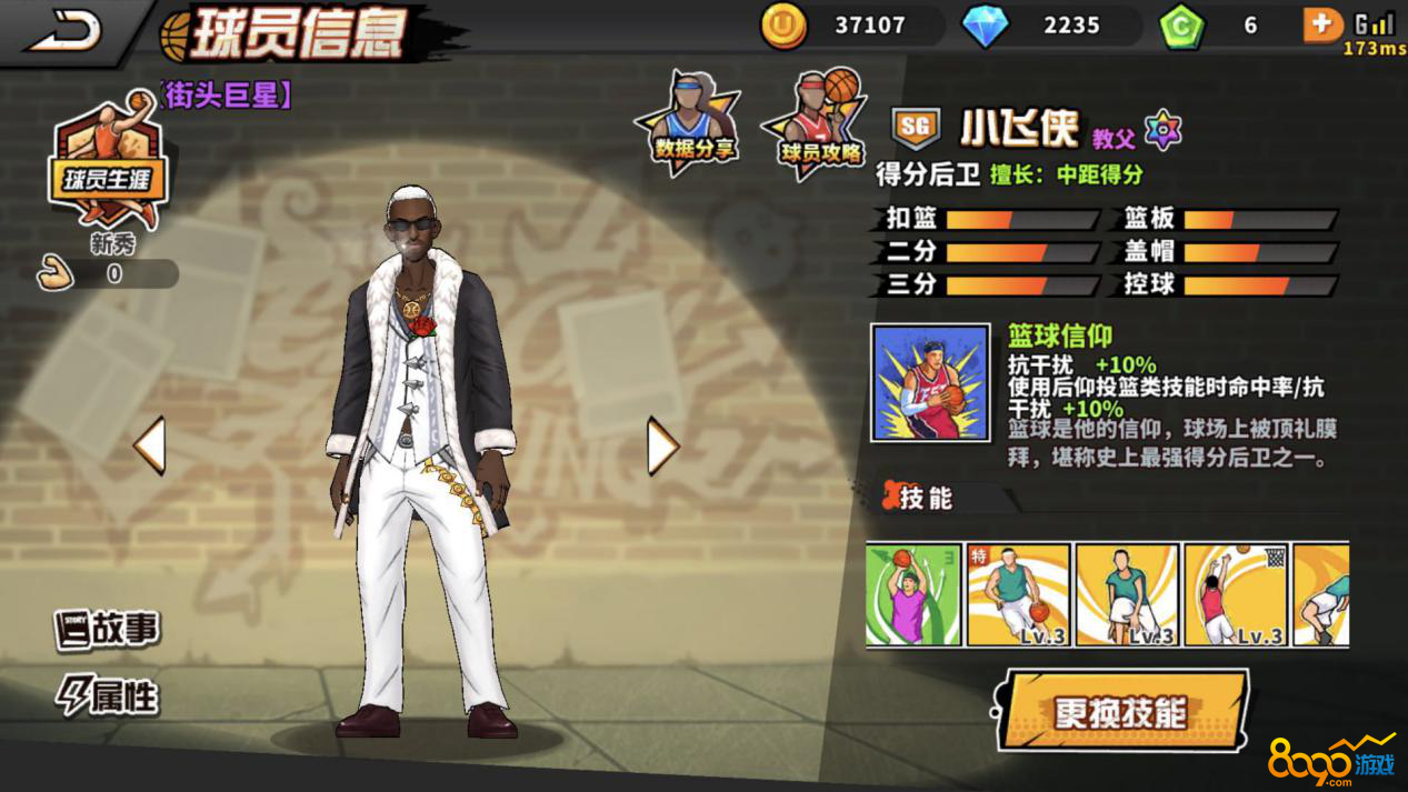 天赋:使用后仰投篮时命中率和抗干扰+10%