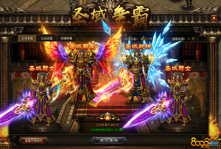 各位玩家要注意哦,圣域争霸要在开服后的第三天才会开启的。