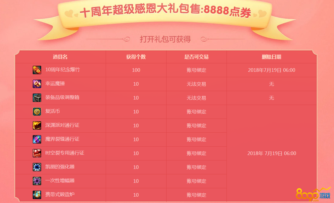 十周年礼包适合有各种号但未打造完全的角色使用,里面有各种提升需要的消耗品,10个小锤子也可以稍微满足一下抽盒子的欲望。