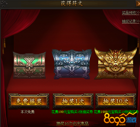 l 花费元宝抽奖,累计10次必出蓝色符文,更有几率获得更高级符文