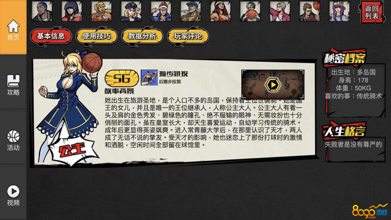 搜索"8090网页游戏"街头篮球游戏是从很久之前就一直流行到现在的一款热门游戏,里面呢有很多具有运动天赋的球员,今天呢我就为大家来好好讲解一下在游戏中进攻非常厉害的球员公主的使用方法和技巧吧。