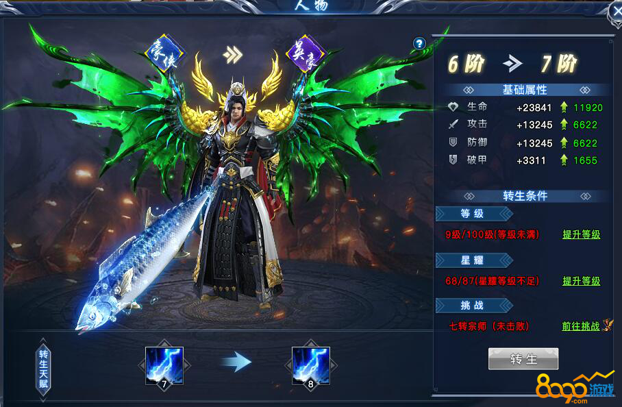 星耀:星耀等级是转生条件中最难完成的一个,星耀的获取每天都是有上限的,高转的时候需要的星耀等级更多,可能需要玩家卡在星耀这一环好几天