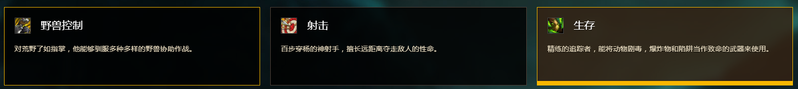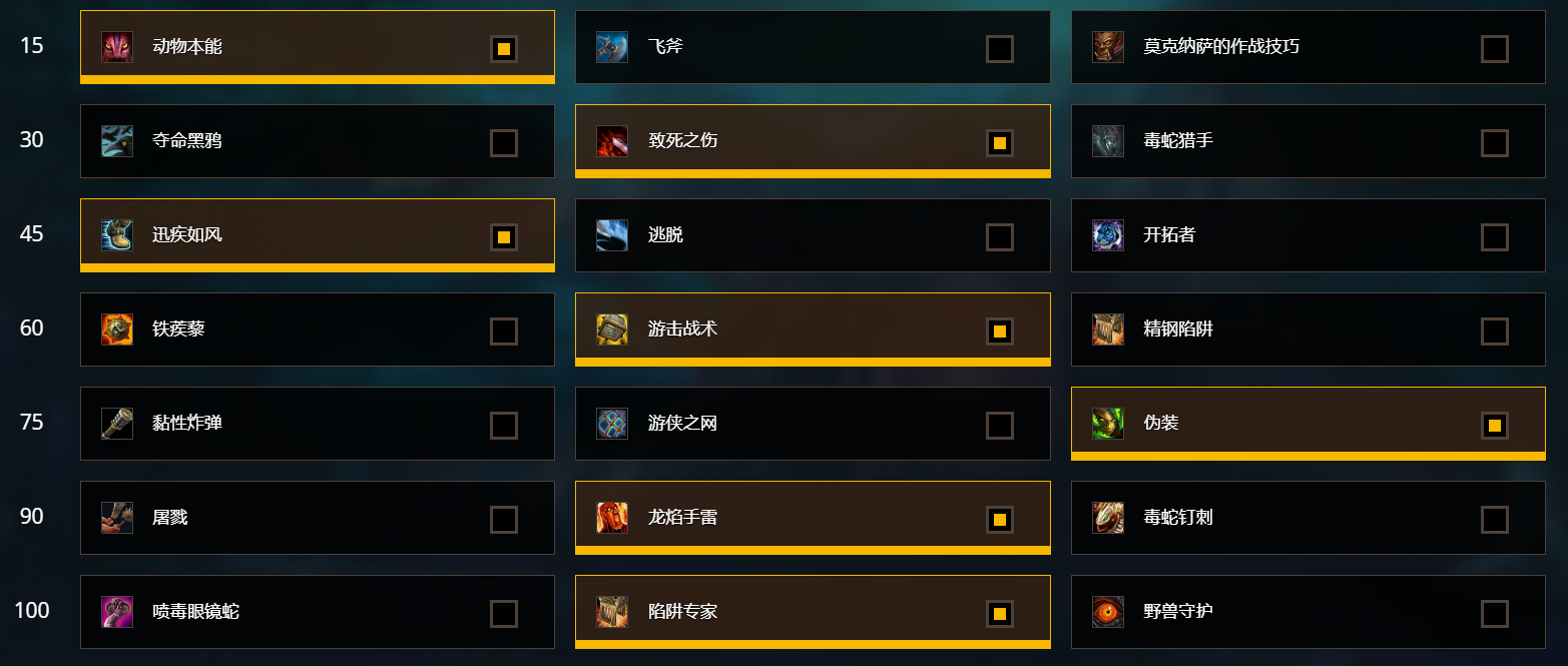 猎人总共有3个专精,分别是野兽控制、射击和生存,那么今天来介绍一下生存猎在副本中的天赋选择。
