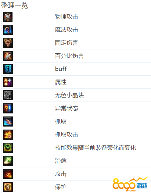 起源版本更新后,技能视频演示和文字说明中间多出了一些小图标,每个技能的小图标综合起来就是此技能的特性标记,通过浏览技能图标就能很快了解技能的效果和特性,对于越来越多的职业和多号党都是不小的帮助。下面就是各种小图标代表的含义: