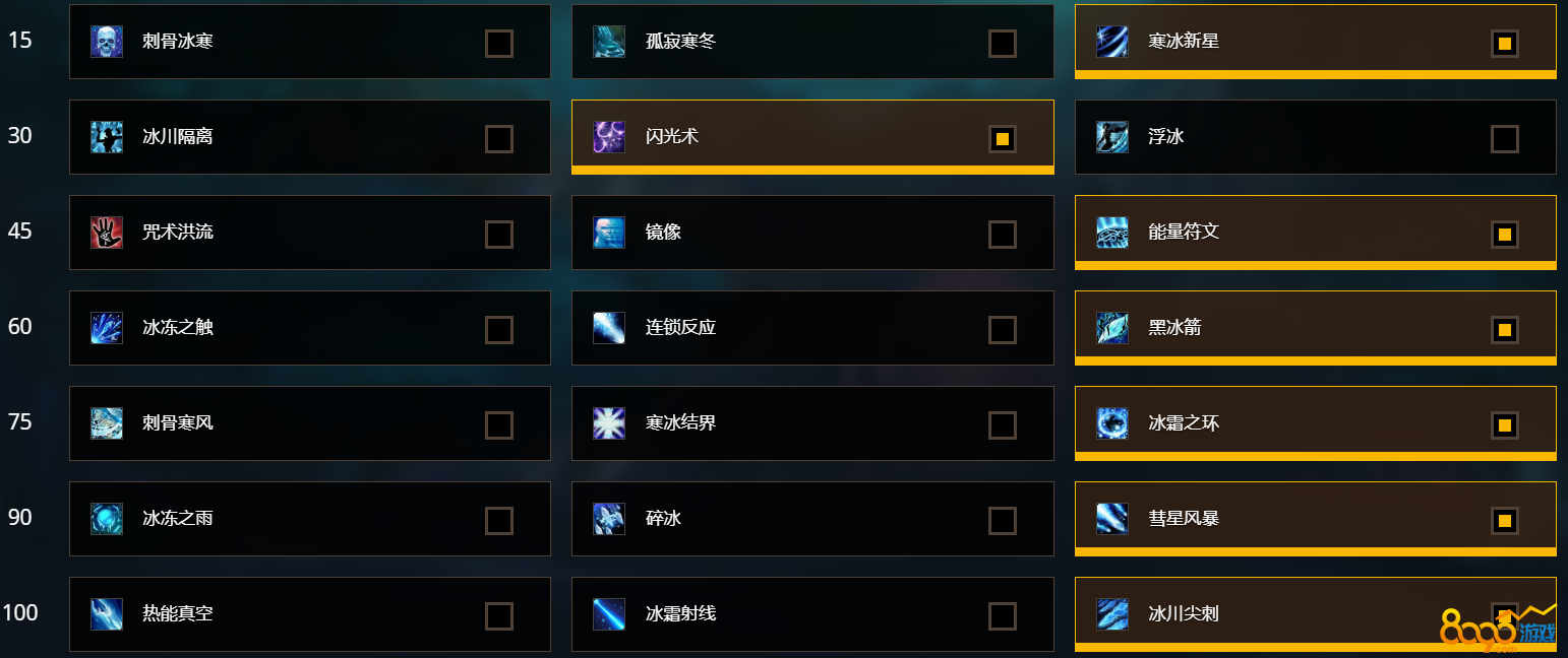 搜索"8090网页游戏"现在是8.0版本前夕,法师技能也做了调整,法师作为暴雪的亲儿子,三系都很厉害,下面介绍下冰法PVE的专精和天赋选择。