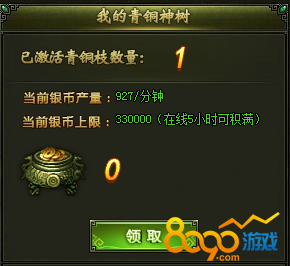 当玩家到达15级时会获得青铜铃铛得到青铜神树,初入手的神树只有一级,但是每分钟可自动为玩家带来240两银两,随着时间与等级的增加,青铜树每分钟获得的银币会越来愈多,记得需要玩家自己领取哦。那么如何获得更多银两呢?