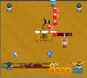 海盗14中当你速度落后对手的时候,可以利用泡泡数量来挡住对手放置对手近你的身,以免对手利用速度优势炸死你。如图(1)(2)(3)(4)(5)(6)的方式可以利用泡泡连一排泡,来造成一定区域的爆炸,让两个人都处在只有一个安全点的位置,这样对手即使有速度优势也不敢轻举妄动,另外也可以造成对手躲避不及时而死亡,自己获得胜利。