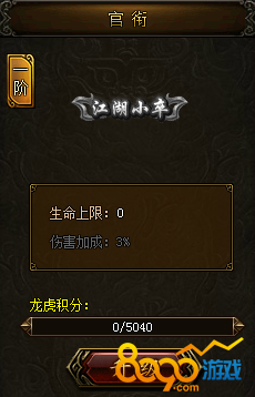 消耗龙虎积分可升级官衔,通过跨服活动可获得官衔升级资源