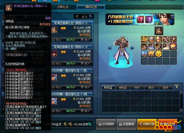 搜索"8090网页游戏"DNF体验服更新了新一轮的活动内容,正式服将会在8月2日更新。这次更新出了一套新的时装,魔盒也得到了更新,下面就和大家详细说明下部分更新内容。