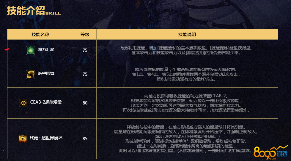 DNF源能专家觉醒后的名字叫做未来开拓者,是不是听上去就有些高大上呢,主要的四个技能就是源力汇聚,绝望圆舞,CEAB-2超能爆发,以及终焉:超世界崩坏。