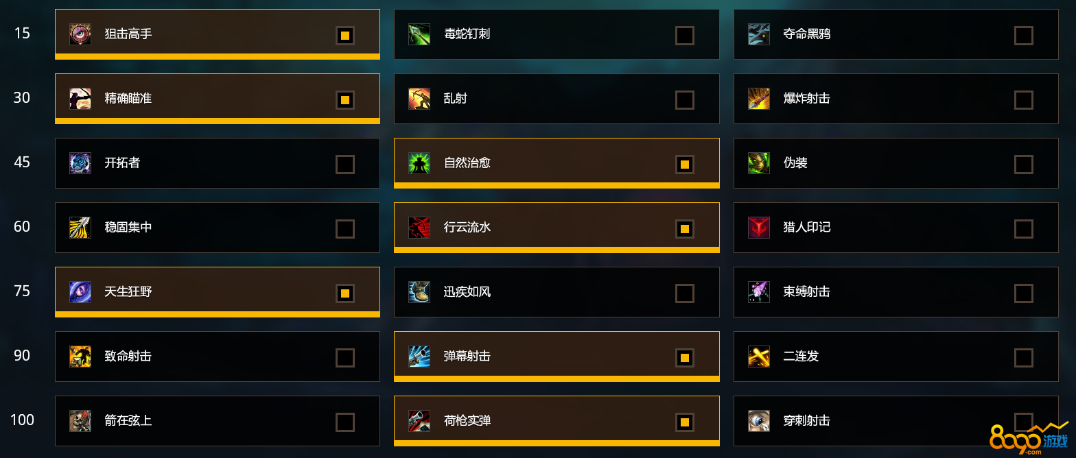 第七层:荷枪实弹:你的远程自动攻击有5%几率触发荷枪实弹,使你的下一次瞄准射击变为瞬发且不消耗集中值。配合第一层天赋,能够更好的打出好的输出循环。
