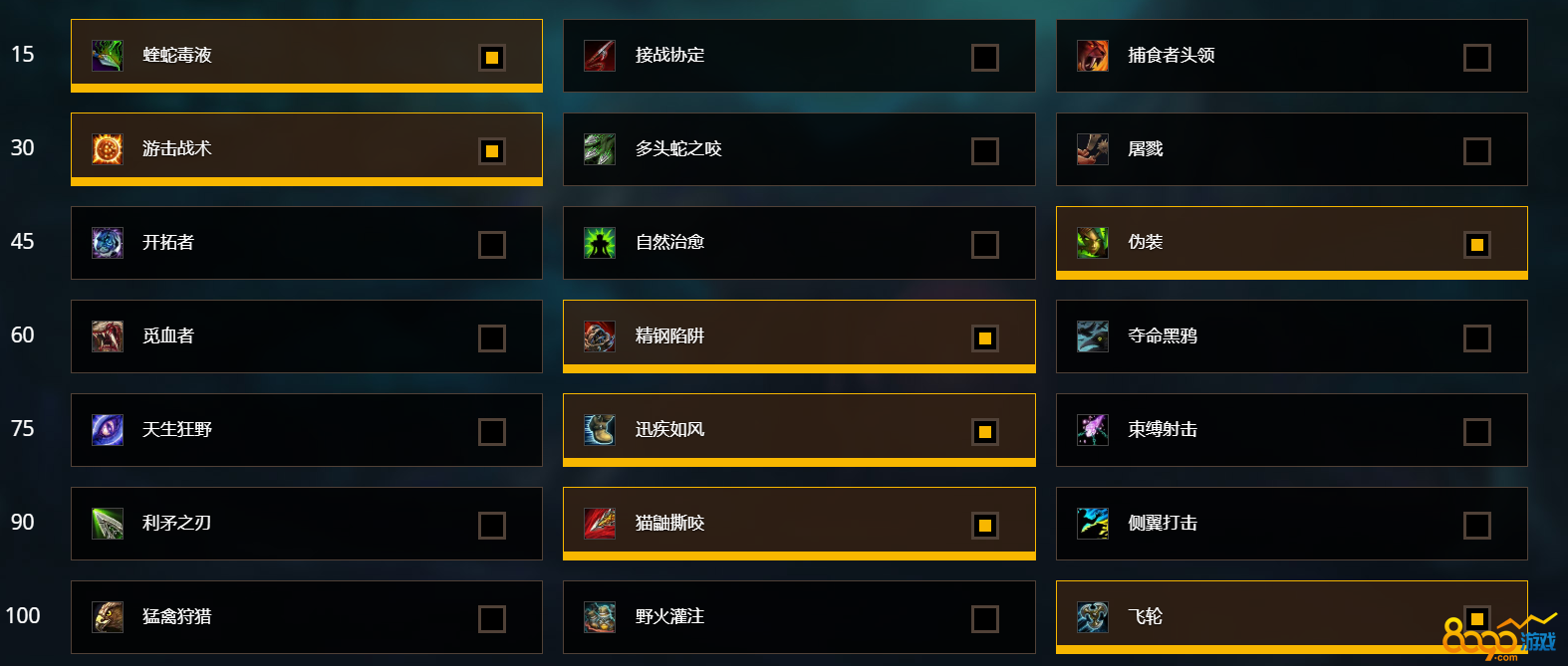 搜索"8090网页游戏"在8.0前夕中生存猎在PVP中还是很强势的,生存猎的存活和伤害都能打的很足的,今天就来介绍一下生存猎在PVP中的天赋选择。