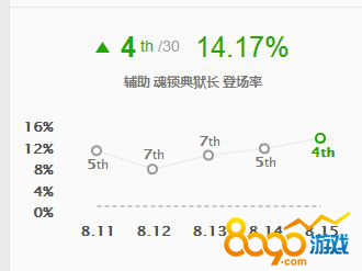 我们先看一下新版本锤石的出场率,已经上升到了第四位。