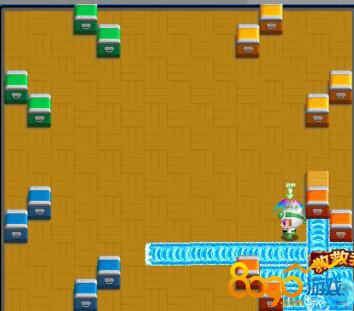 搜索"8090网页游戏"如下图(1)先把红色对手和自己逼到死角位置,然后抢占左半身位置,这样泡泡炸不到自己,自己的左边大部分身体在两竖条格子的左边。等4个绿色泡泡爆炸时,放下一个泡泡。
