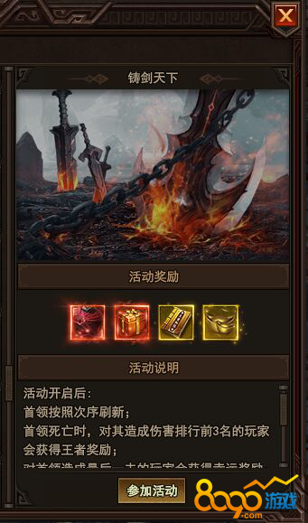 搜索"8090网页游戏"太极崛起相较于其它游戏而言,参加游戏里面的铸剑天下的活动可以免费的获得元宝,那么铸剑天下这个活动的规则和奖励是什么呢