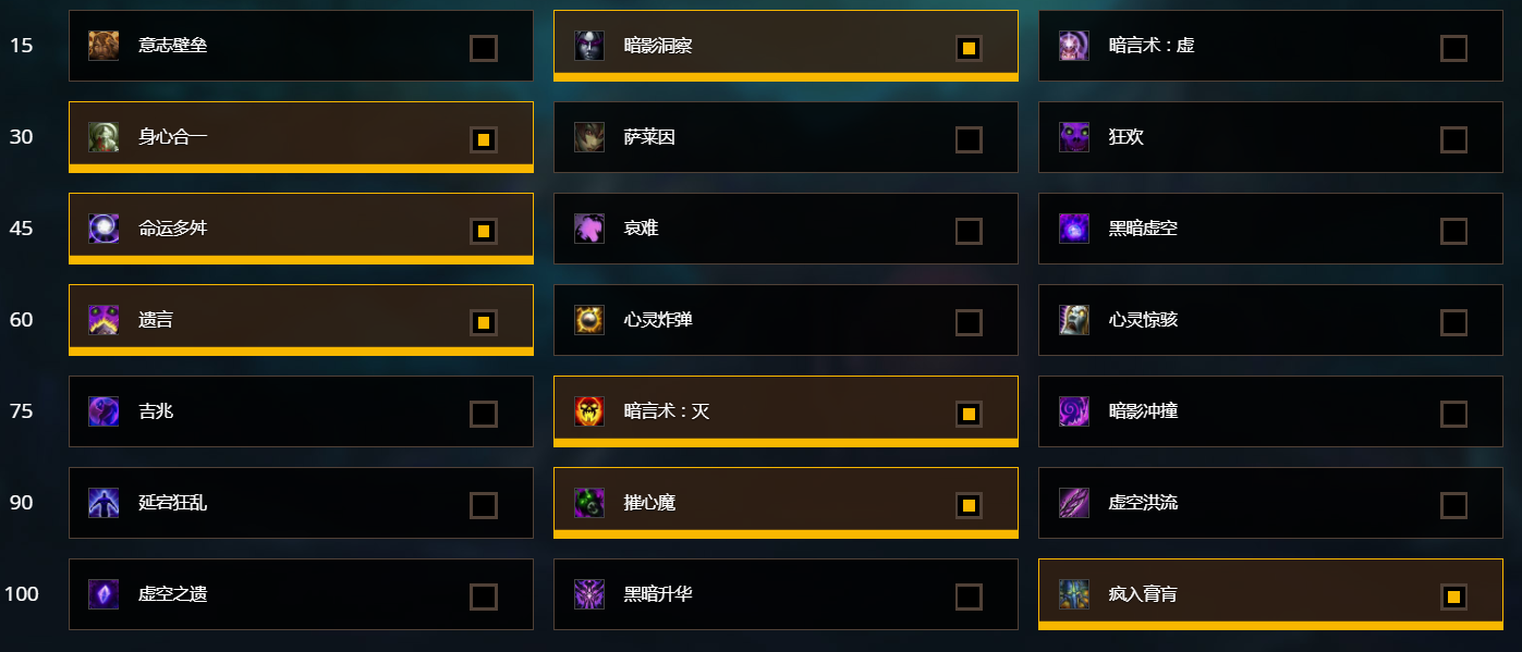 牧师总共有3个专精,分别是戒律、神圣和暗影,那么今天来介绍一下暗牧在PK中的天赋选择。