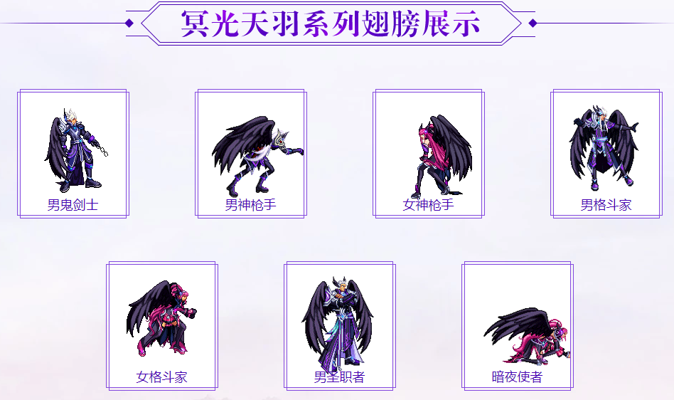 DNF冥光天羽套装在七夕期间上线,绝美的超值礼盒售卖,七夕比翼齐飞礼盒就能开出冥光天羽的翅膀啦,也可以称作是黑色的鸡翅膀!