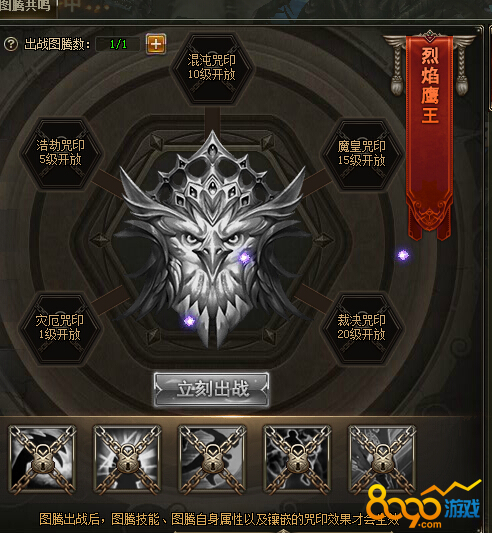 烈焰鹰王是焰鹰图腾里面的一个,总共有五个技能,每个技能都是很强力的,除了提升刷怪的伤害之后,还会增加打怪的经验。