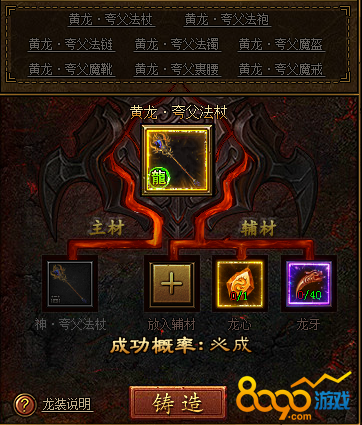 搜索"8090网页游戏"在金装传奇中除了可以升级神装,如将神装从后羿装备升级到夸父装备,还有另外一种升级装备的方式,那就是合成龙装。下面就介绍一金装传奇的龙装是怎么合成的。