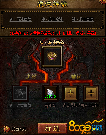 混沌装备目前的获得方式有3种,分别是击杀boss夜叉王、活动和合成。合成就是将神装从盘古装备升级到混沌装备,但在神装中可以升级的部位只有3种,分别是头盔、腰带和鞋子,其他的装备是无法合成的。活动获得混沌装备这边就不介绍了,因为不同的活动获得的混沌装备的方式是不一样的。这里主要介绍下击杀夜叉王获得混沌装备。