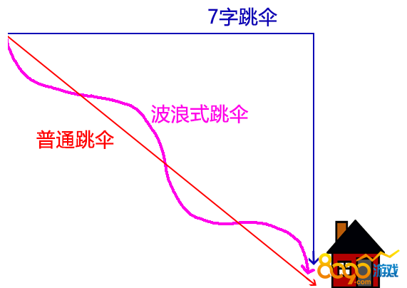 波浪式跳伞方法就是指你跳伞的过程中,先垂直下降速度达到最高时,再慢慢上抬使人物改为水平方向飞行,当速度减少到170KM/H之后再垂直下降,循环重复直到落地。