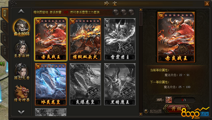 搜索"8090网页游戏"传奇霸业近期更新了全新的图鉴系统,收集图鉴中的卡牌,升级卡牌,不仅可以得到战斗力的提升,还能提升游戏角色各个方面的属性,下面就和小编来看看全新的图鉴系统吧。