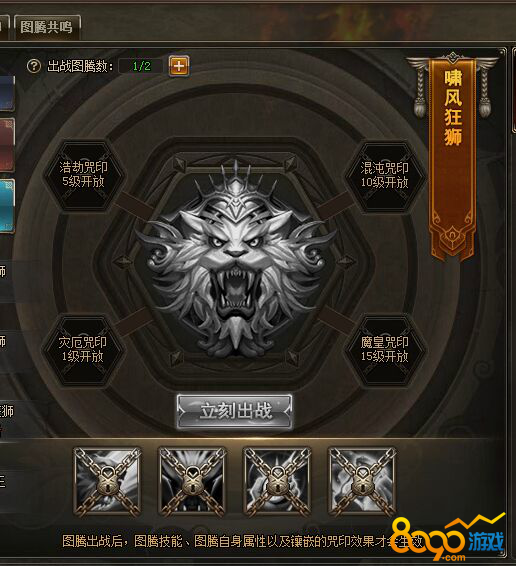 搜索"8090网页游戏"啸风狂狮是狂狮图腾里面的一个,总共有四个技能,每个技能都是很强力的,主要是提高人物暴击率和减免暴击时候的伤害。