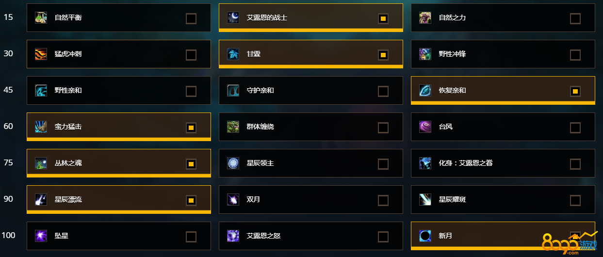 鸟德总共有4个专精,分别是平衡、野性、 守护和恢复,那么今天来介绍一下平衡德在战场中的天赋选择。