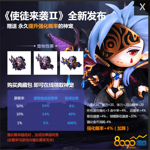 本次周边商城的活动主题主要就是使徒来袭2全新发布了,购买典藏包就能获取增加强化概率的道具啦!