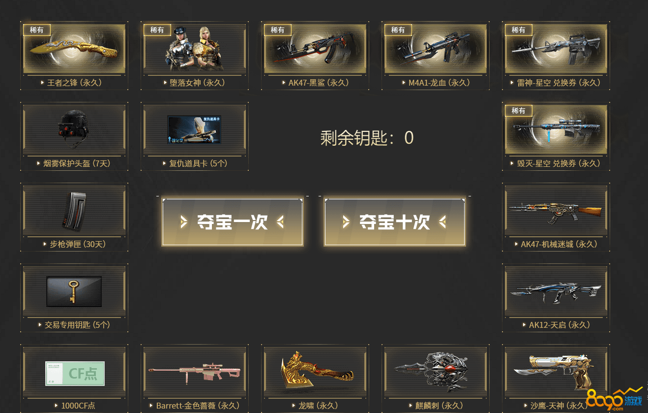 抽抽乐活动的奖励道具这次堪比是史无前例的好,基本上每个东西都有用处,稀有的枪械也是有史以来展示的最多的,王者之峰、堕落女神、黑鲨、龙血、雷神-星空、毁灭-星空等,还有英雄级武器机械迷城、天启、天神、麒麟刺、龙啸和金色蔷薇,基本上每个东西都是稳赚不亏的,可以先弄个10元试试水,说不定就中一个极品道具。