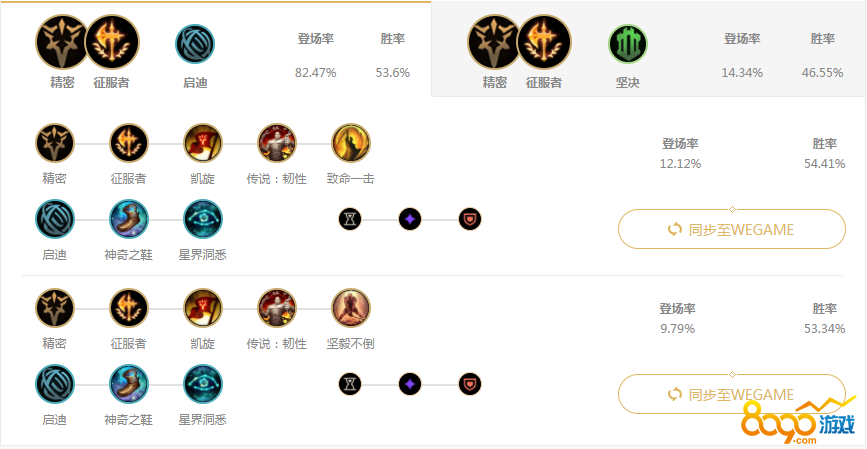 锐雯的符文在近几个版本中都没有什么变化,主系毋庸置疑选择征服者,真实伤害以及回血配合锐雯的小技能连招,可以在线上进行消耗和换血,副系选择鞋子和星界洞悉,让锐雯获得更高的冷却缩减。