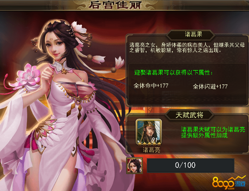 1. 佳丽不仅可以培养羁绊武将,还能给全体增加各种属性。