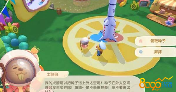 然后跟他对话领取太空种子