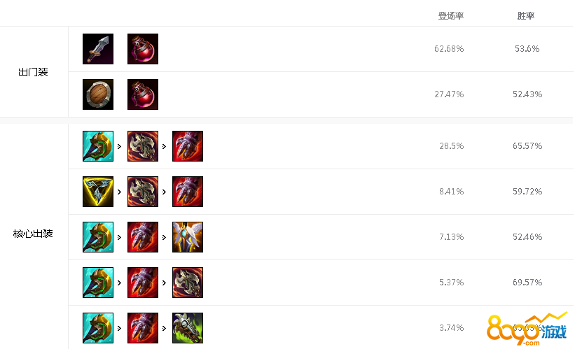 思路:一级通常卡视野平A起手,有个被动的盾不怕换血,就算损失血了也可以W反手。或者一级就学E打脆皮长手,二级Q直接秒杀。中后期打单带最好,出破舰者,打团就注意限制对面C位位置就行。