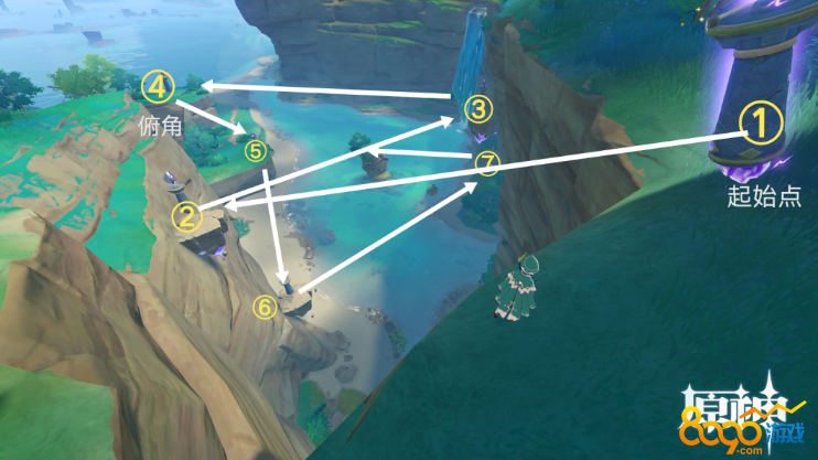 取得磐柱镇石:利用元素视野找到入口跳下去(注意不要碰到紫水,会极速掉血)一路跟随指引即可;
