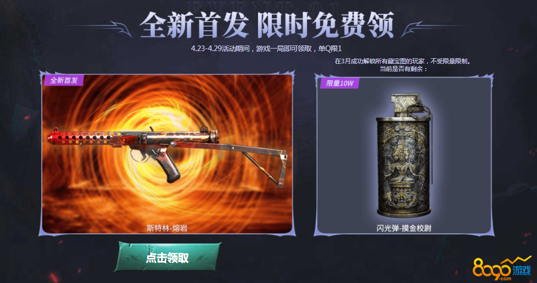 cf斯特林熔岩如何获取。Cf斯特林熔岩在本月倒数第二周周末活动中登场了,在摸金校尉联名第三波活动中出场了,想要获取这把武器还是非常简单的,只需要在4月23日到4月29日之间进行一局游戏即可永久领取,还可以额外领取一个闪光弹摸金校尉,但是限量10w份,也有例外,就是在三月份解锁了全部藏宝图的玩家可以不受限量的限制,完成任务就可以领取。