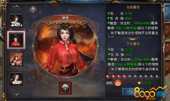 等级达到50级后侠侣系统开启,有了侠侣之后可以使用侠侣信物来提升等级。有了侠侣之后可以获得侠侣专属的属性加成哦,通过穿戴侠侣的配饰来叠加各种属性。攻击、生命、魅惑等等。