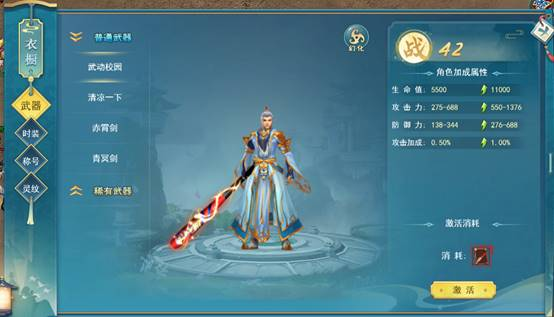 武器激活成功后,想要对该武器进行升级,也需要消耗对应的武器原型。升级之后的武器,会给玩家提供生命值、攻击力、防御力、攻击加成等属性。游龙传说游戏中的武器有很多种,每种武器的属性都不一样。