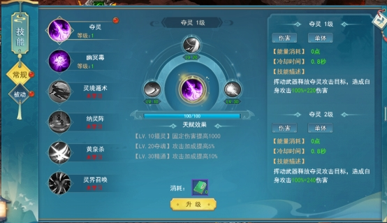 玩家将技能升级到指定等级之后,需要消耗技能书进行突破,突破之后的技能会获得天赋效果,玩家该技能的等级越高,天赋效果就越强,每种技能突破之后的天赋效果不同。
