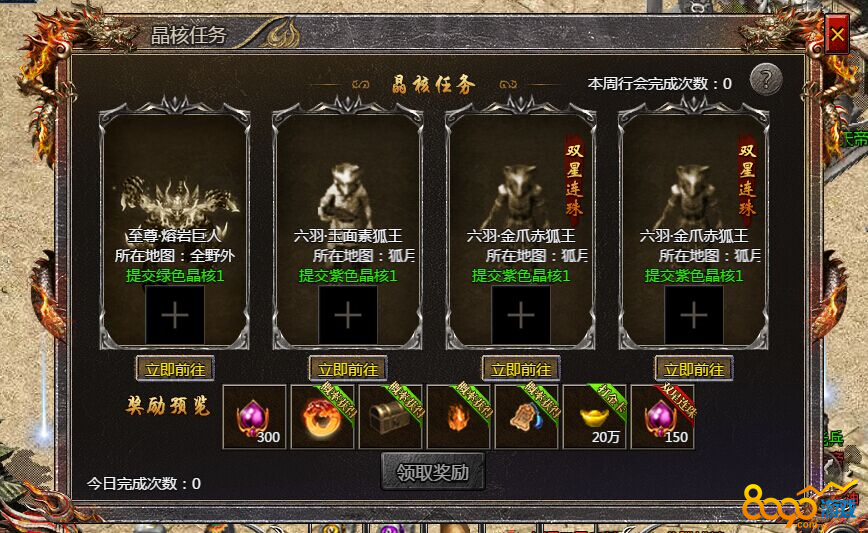 或许有很多人觉得有点鸡肋,每天按照任务刷BOSS比较浪费时间,但是这个是行会任务,大家一起来做,50次会给圣宝匣,还是挺不错的。
