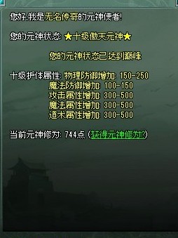 一直有一个很简单的方法被大家所遗忘,那就是提高自己的元神等级,元神等级最高为十级傲天元神,他的属性加成也同他的名字一样犀利。