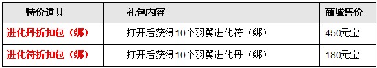 活动期间拥有羽翼九折卡后,即可以九折的价格购买羽翼进化丹和羽翼进化符。活动结束后将下架,请抓紧时间购买!