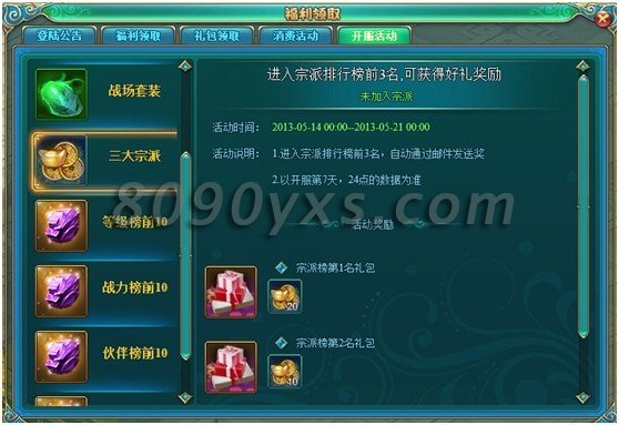 1. 进入宗派排行榜前3名,自动通过邮件发送奖励