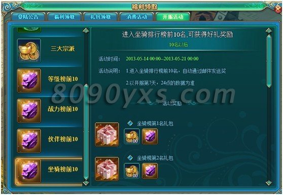 1. 进入坐骑排行榜前10名,自动通过邮件发送奖励