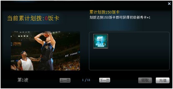 活动内容:首次划拨达到一定饭卡可以领取永久球员及道具等奖励,